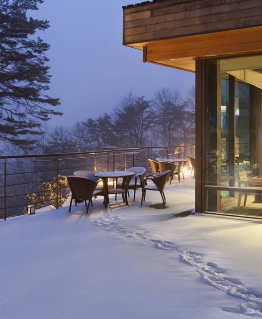 - 정원 산책로: 겨울철 새하얀 눈으로 덮인 정원을 산책하며 한가로운 시간을 즐길 수 있습니다.