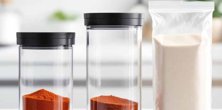보관용 밀폐용기나 유리병, 스테인리스 통이 더 좋아요.
