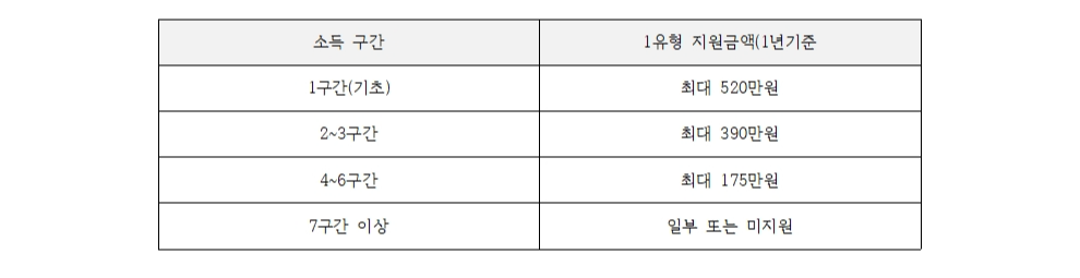 - 소득분위에 따라 지원 금액이 다릅니다.