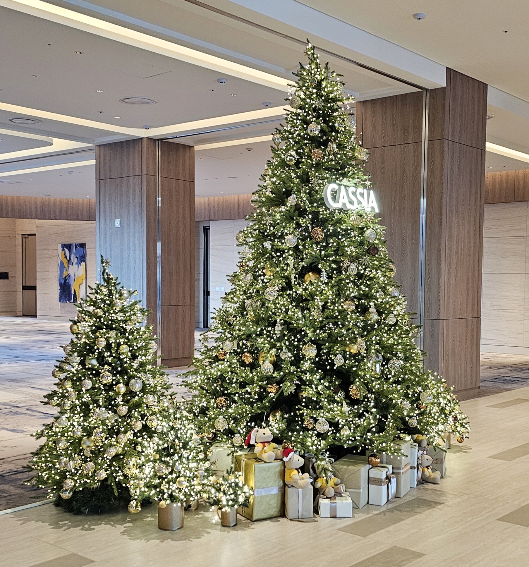 - 로비 아래층에 꾸며진 크리스마스 트리 포토존은 사진 찍기에 완벽한 장소였습니다.
