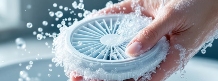 2️⃣ 미지근한 물에 중성세제를 풀고 필터를 담근다 (5~10분 정도).