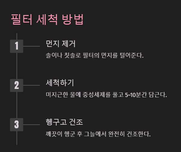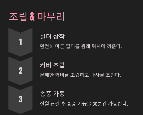 ⚠️ 필터 세척 후 완전히 건조된 후 재조립하세요.