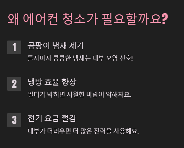 ✔️ 전기 요금이 증가한다 – 내부가 더러우면 에어컨이 더 많은 전력을 사용해요.