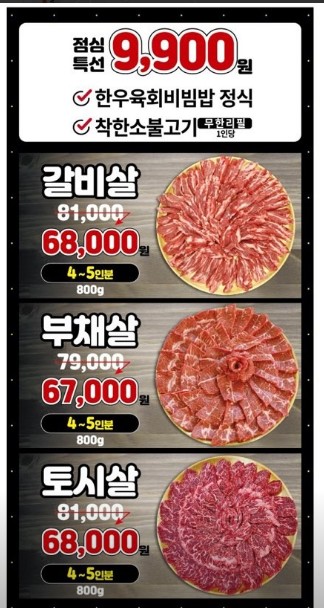 이곳은 방송에서 소개된 것처럼 고기의 품질이 뛰어납니다. 특히, 소불고기 특유의 달콤 짭짤한 양념이 밥과 찰떡궁합이라 계속 먹게 되는 중독성을 자랑합니다. 또한 구이용 고기는 신선한 상태로 제공되어 씹는 맛이 좋았어요.