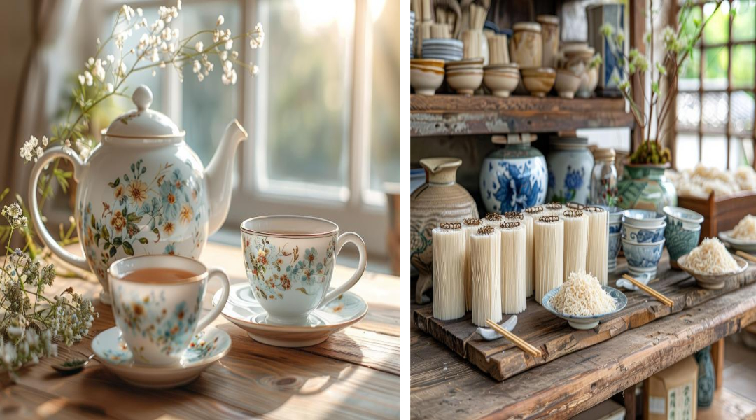 - 고급 보자기 세트, 자개함, 전통 문양의 컵과 접시 등은 품격을 더할 수 있습니다.
