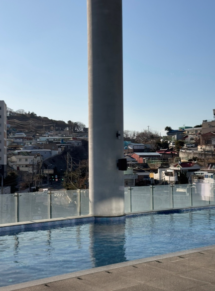 특히 메인풀 끝쪽 투명한 아크릴 벽 뷰가 여수 시내를 한눈에 보여줘서 포토존 느낌 제대로예요.
