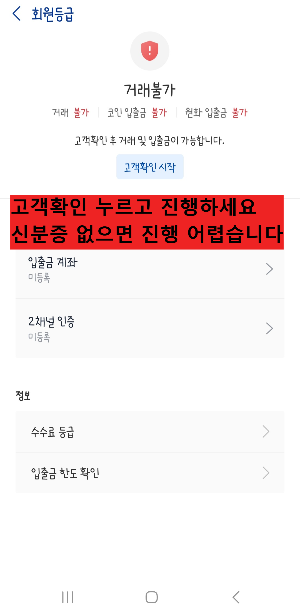 본인인증 하기전엔 거래불가로 뜨니 본인인증 진행해주세요.