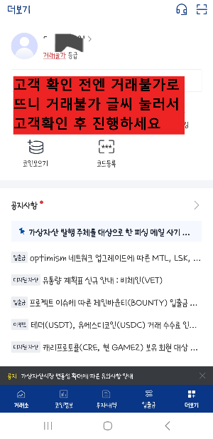 - 옆쪽의 BTC마켓은 비트코인으로 다른 알트코인을 거래할 수 있는 마켓.