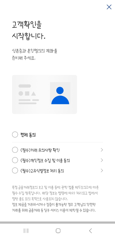 - 실명 인증 및 신분증 확인 절차를 진행합니다.