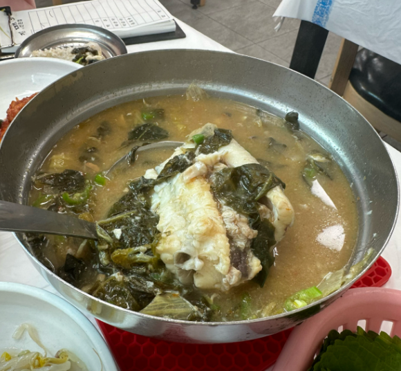 갓김치, 김치와의 조화도 끝내줘서 국물 한 숟갈, 밥 한 입, 김치 한 입이 계속 반복됩니다.