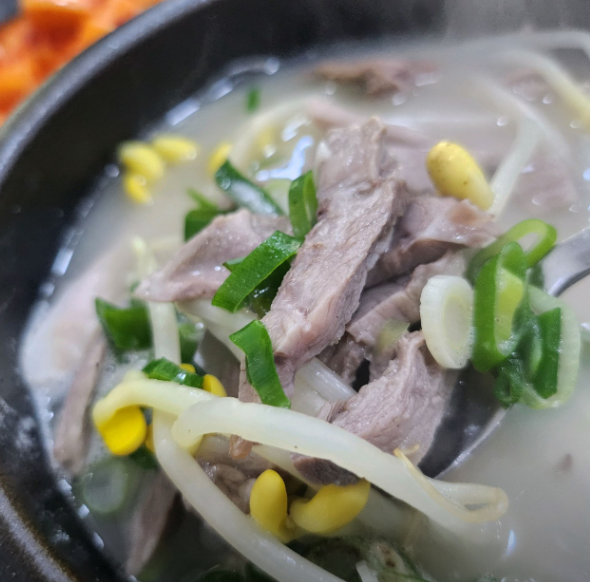 고기 푸짐하게 들어간 머리고기 국밥에 콩나물까지 더해져