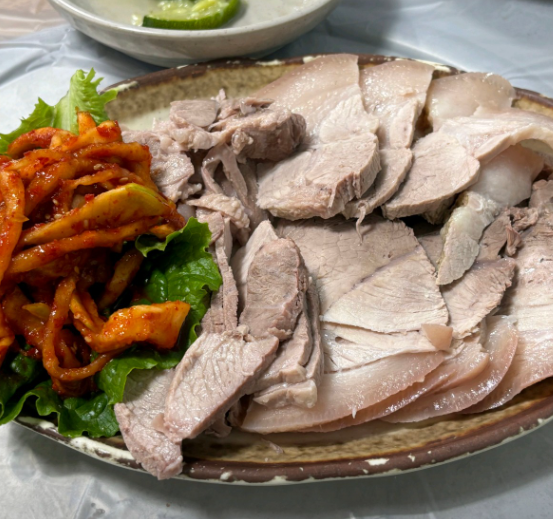 보쌈 살코기는 촉촉하고 부드럽고, 비계는 쫀득쫀득,