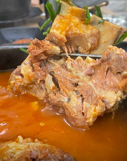 진득하게 끓인 국물이 아주 얼큰하고 깊은 맛이에요.