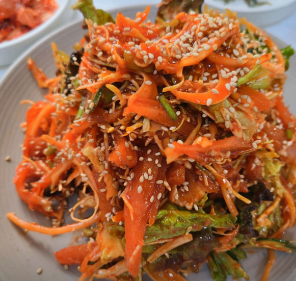 밑반찬으로 나오는 겉절이 김치와 깍두기도 맛이 깊고 정갈해요.