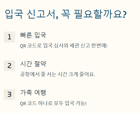 세관 신고서를 따로 작성하지 않아도 되니까 입국할 때 훨씬 편리해요.