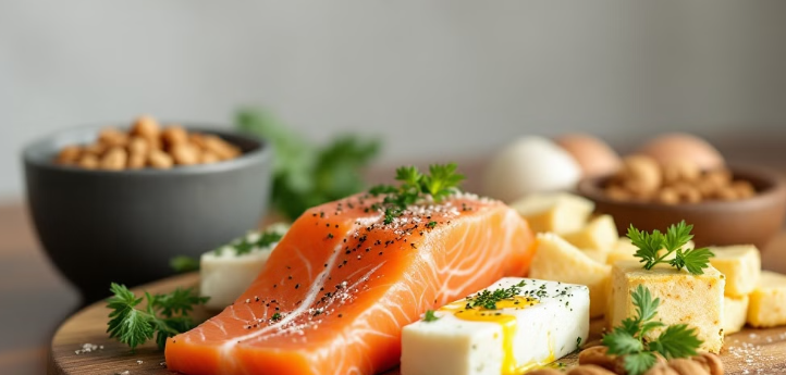 • 닭가슴살, 연어, 달걀, 두부, 견과류