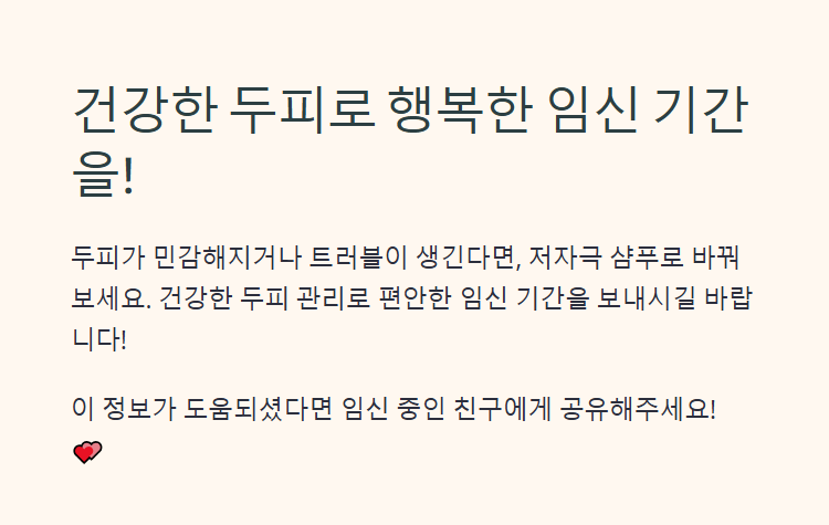 두피도 건강하게 관리하면서, 편안한 임신 기간 보내시길 바랍니다!