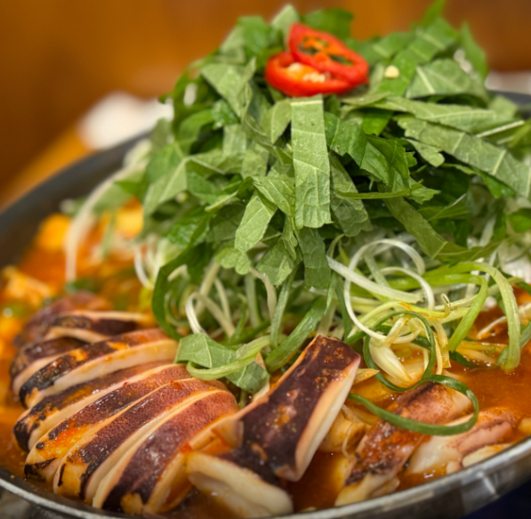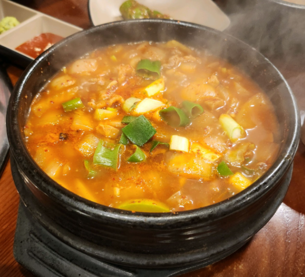 차돌과 오징어가 듬뿍 들어가서, 얼큰하면서도 시원하고 담백한 국물 맛이 매력적이에요.