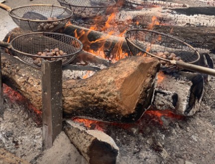 - 장작불 위에서 직접 밤을 굽고 먹는 소소한 재미.
