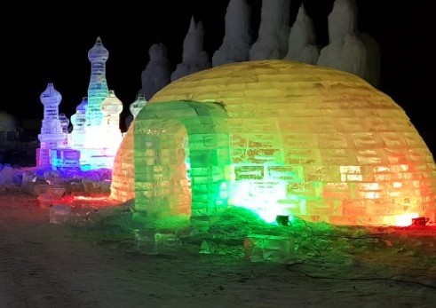 - 형형색색의 조명이 얼음 조형물에 반사되어 환상적인 야경을 선사합니다.