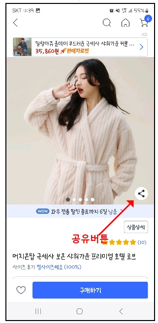 상품 페이지로 들어가면 바로 공유 버튼이 나오는데요.