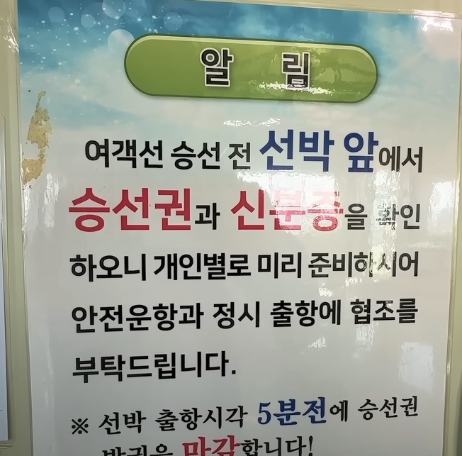✔️ 신분증 필수! 없으면 배를 못 타요.